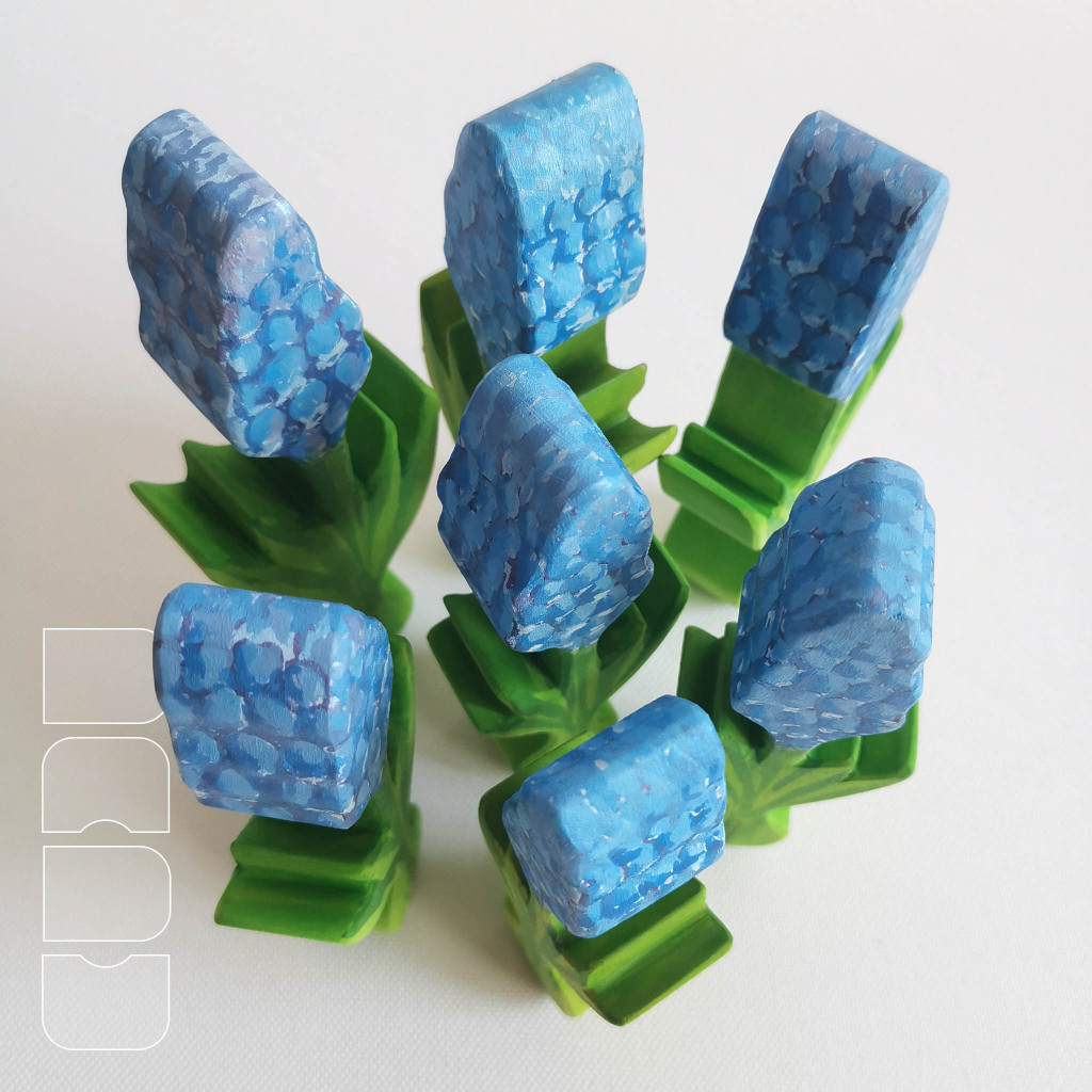 Like every DADU, these flowers are individually made, we hand draw them directly onto the wood, cut them manually, and carefully sand and then paint them by hand with custom mixed colors. No two are alike.